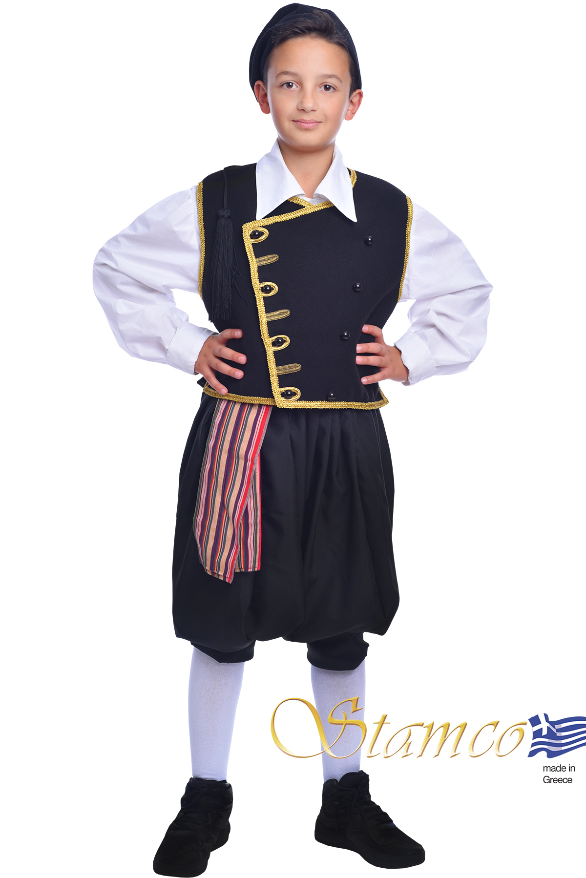 The Island Boy costume consists of: felt vest with embroidery on the back, cotton shirt, trousers (vraka), hat and waistband.