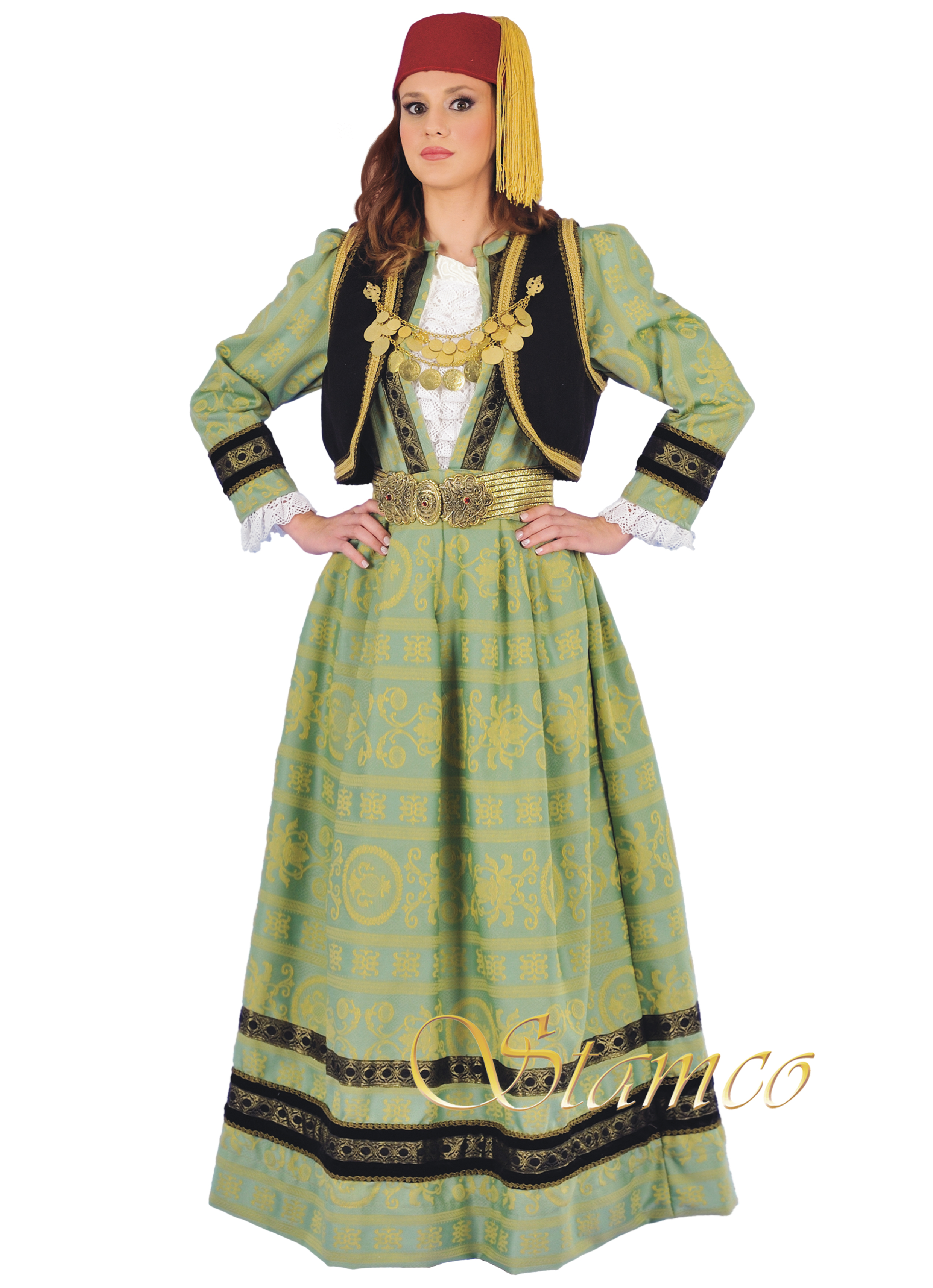 The Costume Kastoria W.macedonia consists of: brocade dress with velvet finishing, velvet waistcoat, shirt and fez, The necklace and the buckle are sold separately