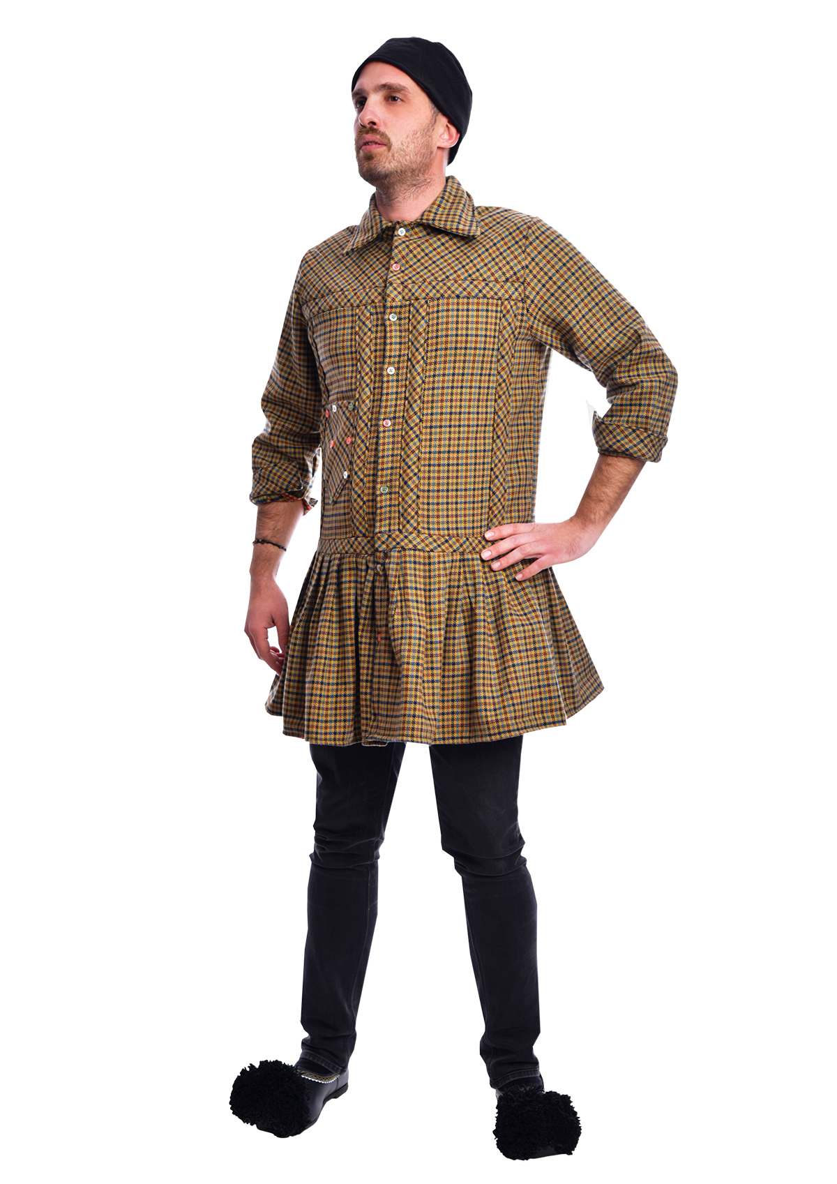 The greek Costume Nestani Arkadia Men's Costume consists of: cotton plaid long shirt with colorful buttons and felt hat.