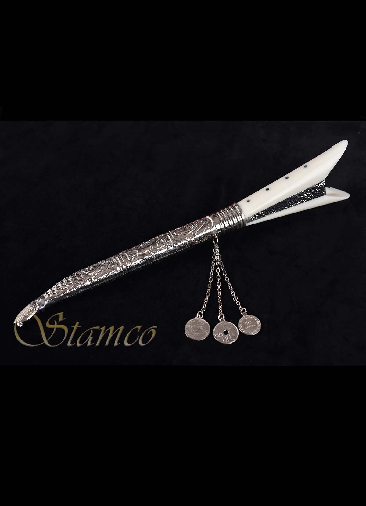 From the base of the case hang 3 chains with coins of the Cretan state while it is quite light that facilitates its use.