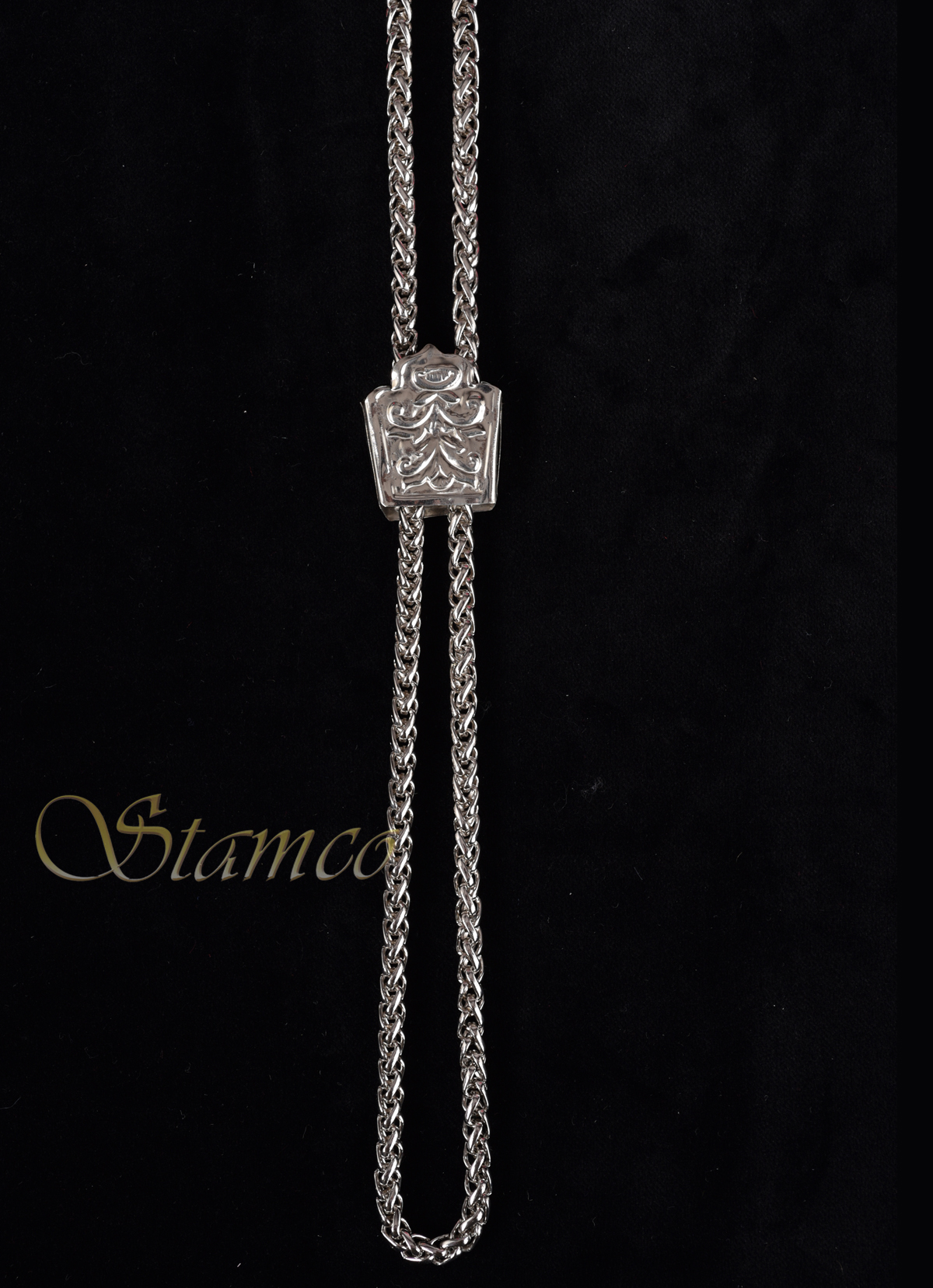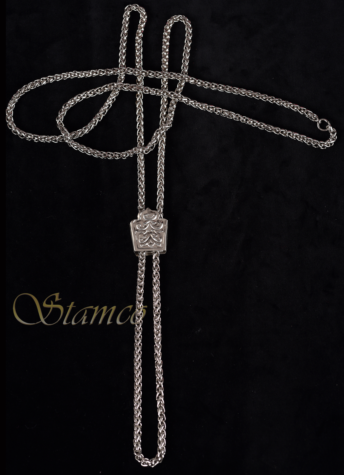 According to tradition, the chain was held by the "alepos" triangular or square accessory that adjusted the height of the chain and tightened around the neck. The rest of the chain fell richly in front of the chest up to the pocket while at the end there was a watch - which men usually placed it in a pocket of their clothing or in the right pocket of their vest while women placed it on their Lahori (heavy woolen fabric over the skirt).